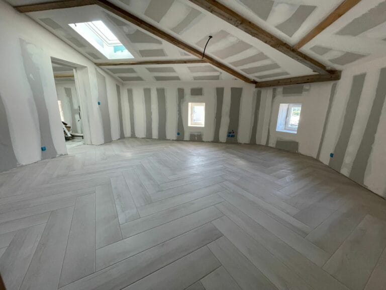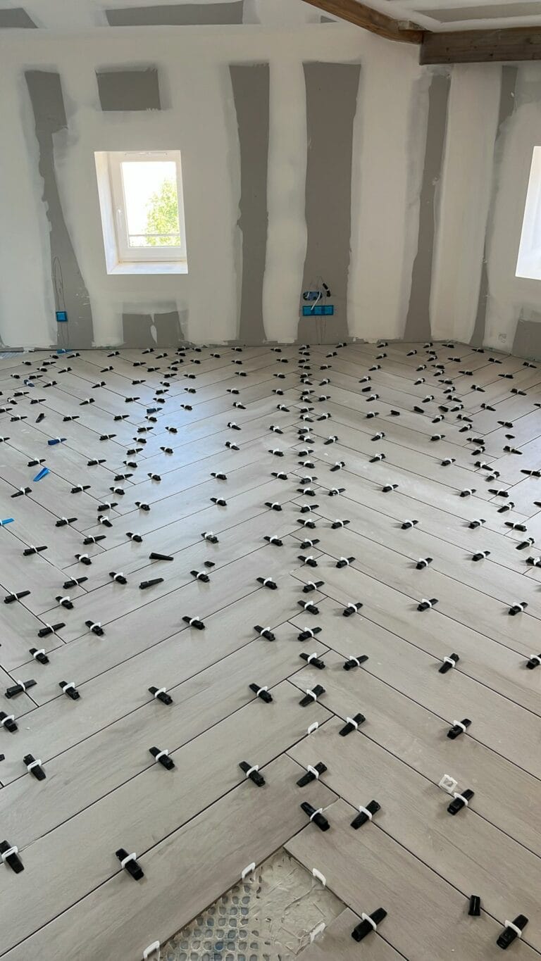 Pose de carrelage imitation parquet en baton rompu